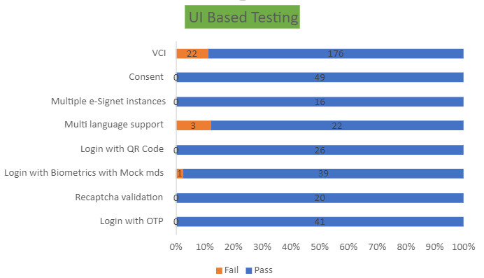 Below are the test metrics obtained by performing functional testing for eSignet using mockMDS, mockAuth and mockABIS. The process followed was black box testing which based its test cases on the specifications of the software component under test.